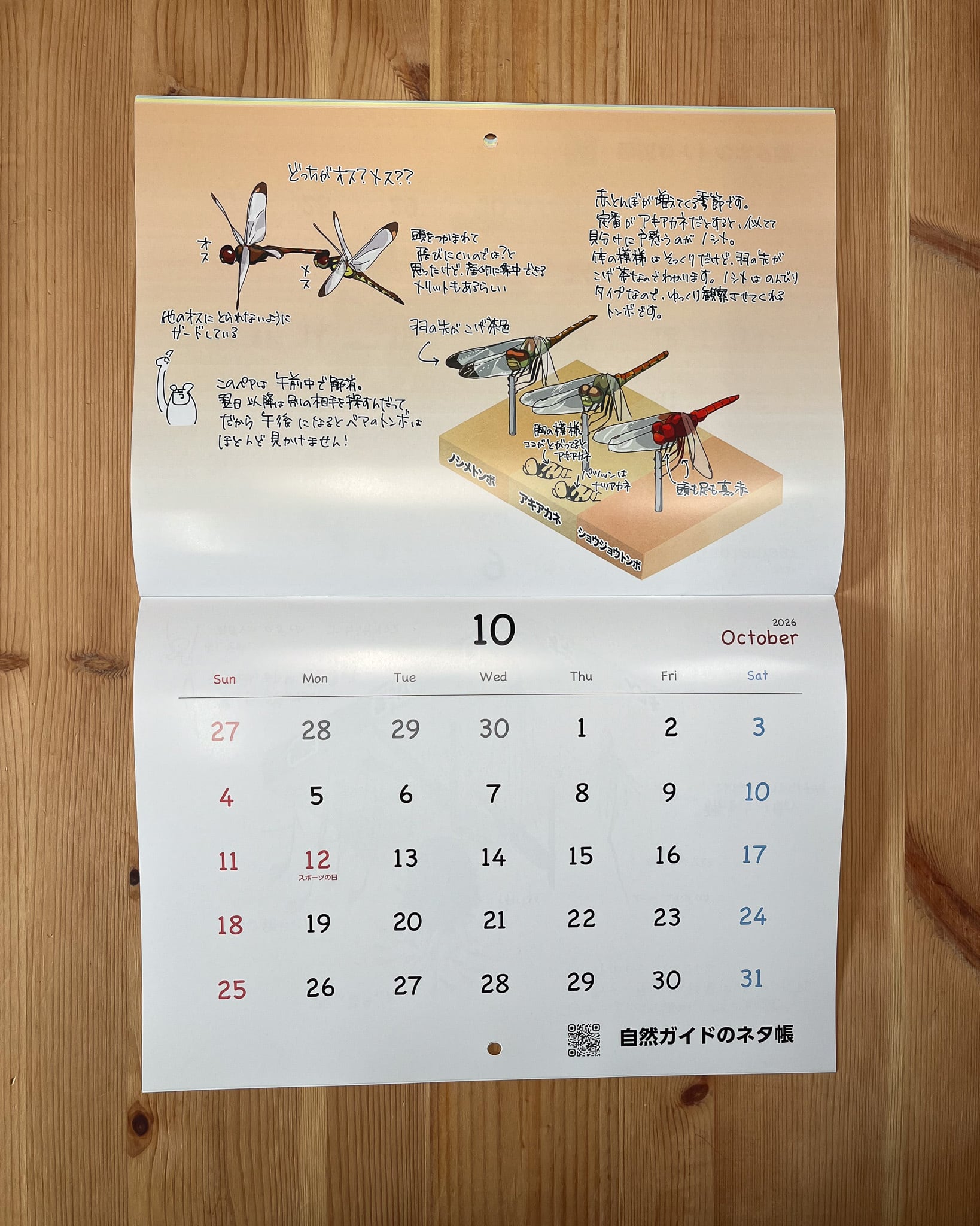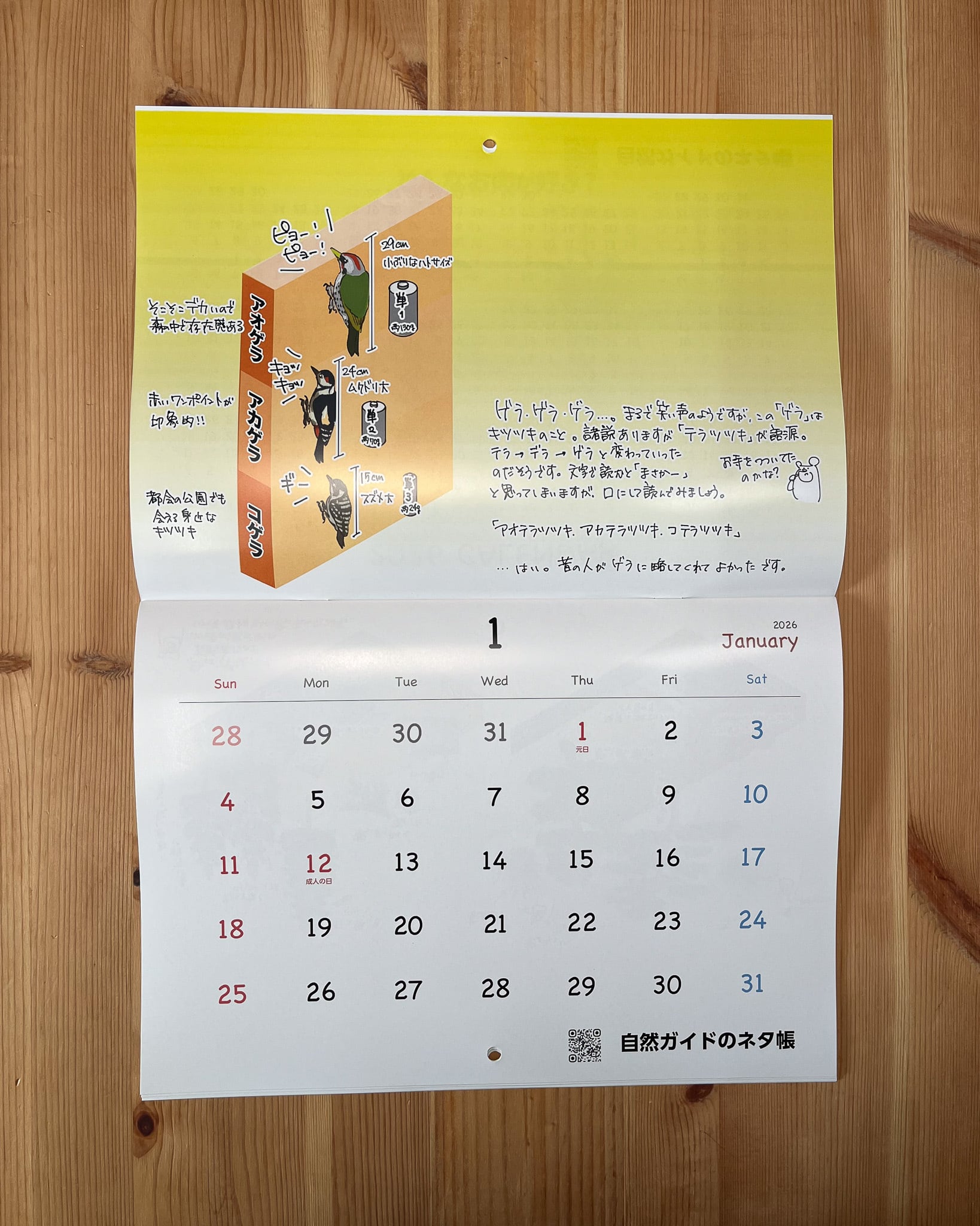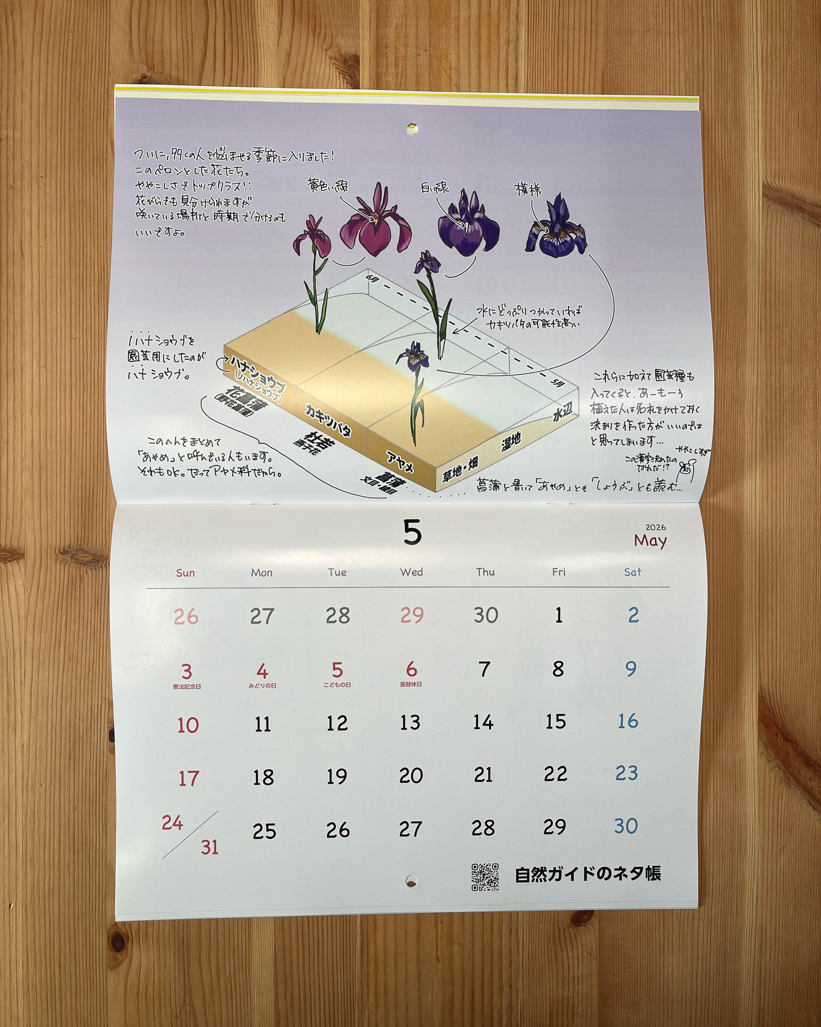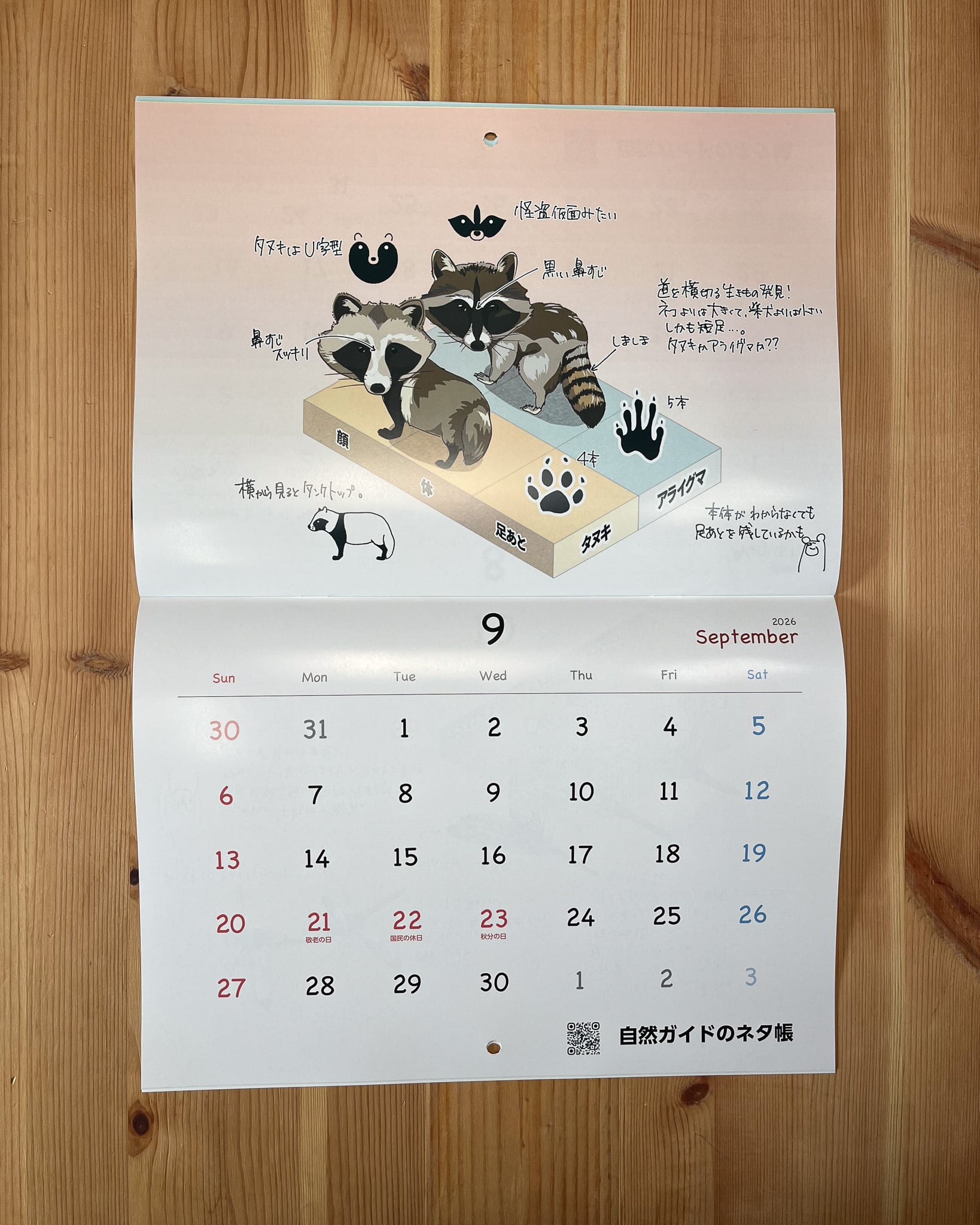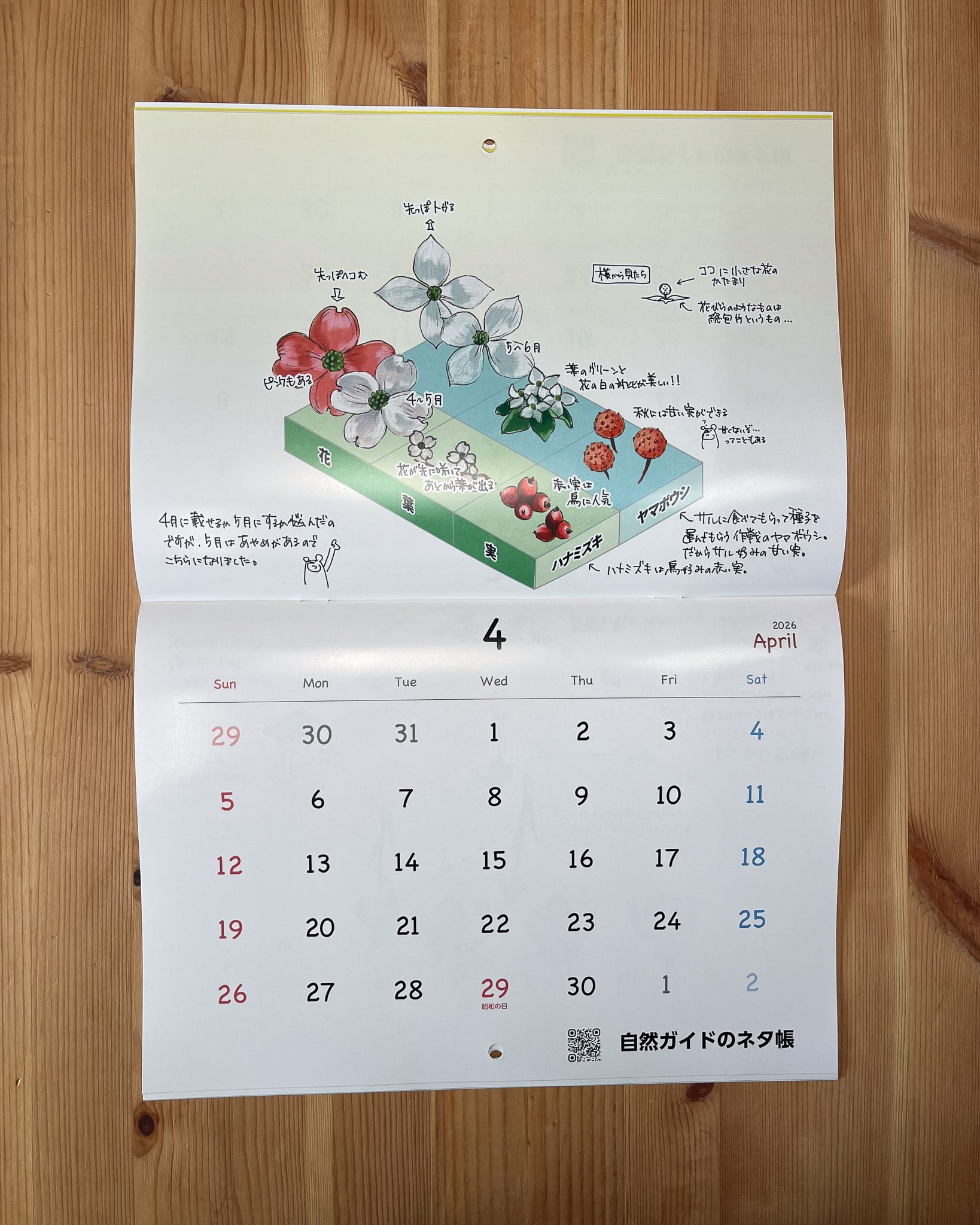 温かみのある手描きイラストと手書き文字で、「その月の」自然の豆知識をお届けするカレンダーです。